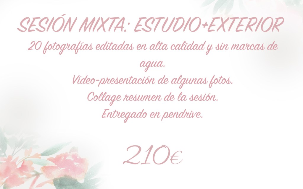 Puedes realizar una sesión mixta que combina fotos en estudio y en exterior.